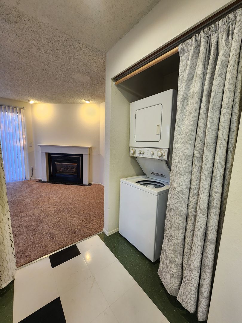 DESCRIPTION: 3 bedroom 1.5 bath, two-story apartment off of Alabama Street. Half bath on first floor, full bath and bedrooms on second floor. The cozy living room features a gas fireplace and balcony. Unit comes with 2 covered, secured garage parking spots. In unit laundry as well as storage unit included.