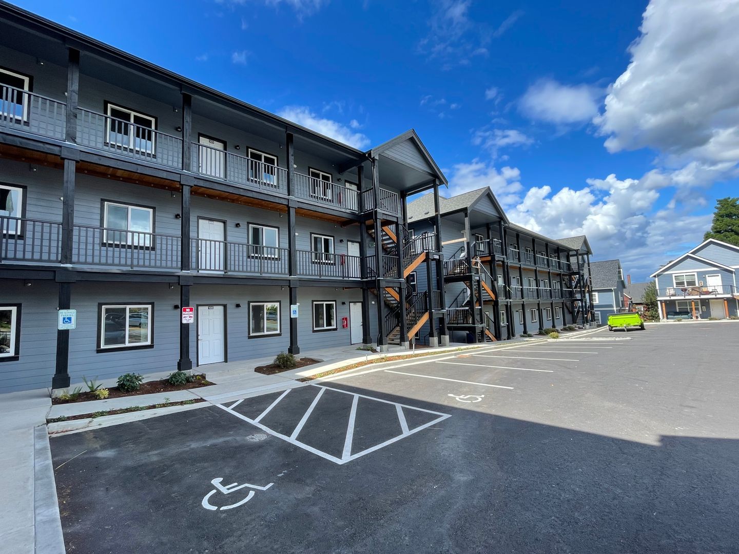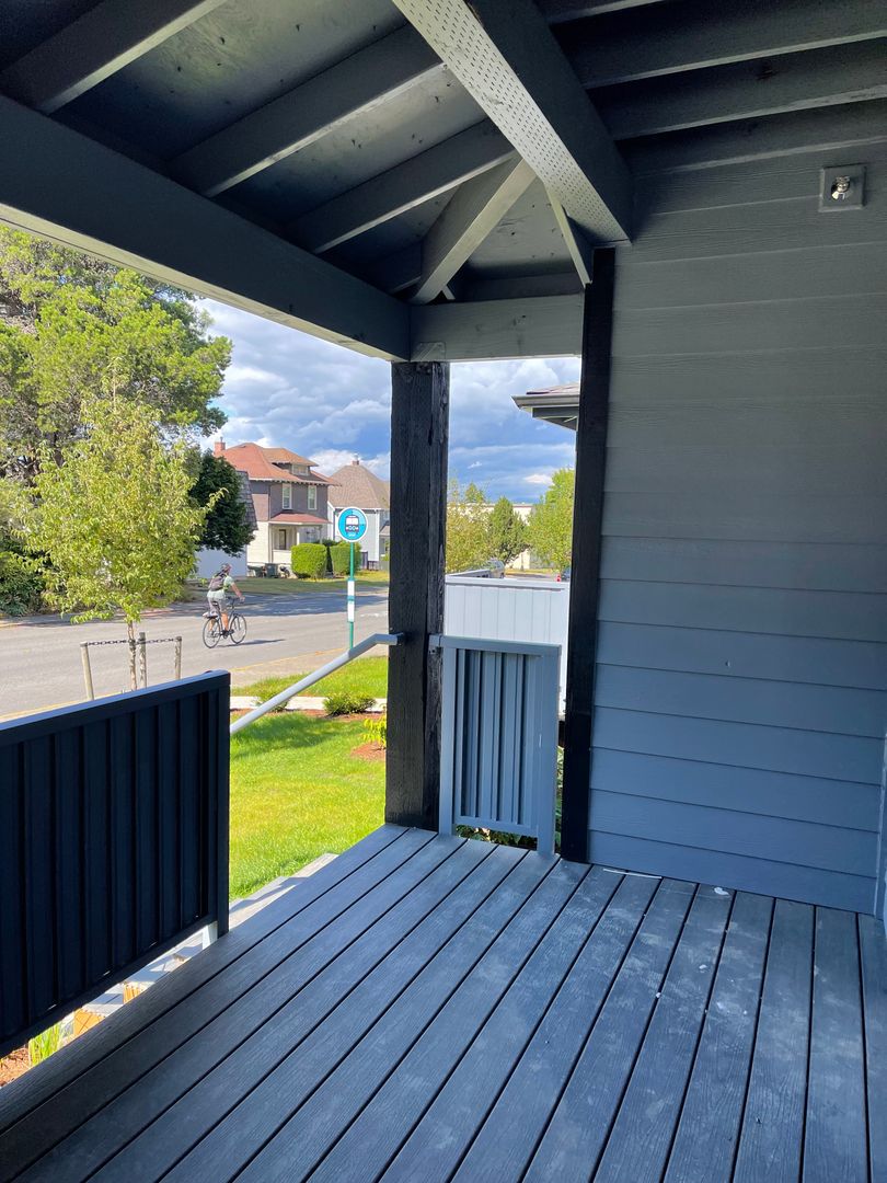 DESCRIPTION: Sunny 3 bdrm/1 bath Ground Floor, ADA-accessible unit with covered deck, laundry in unit, tons of free parking and right on the bus line. Some units have views of the City and Mountains beyond. Modern finishes with durable LVP flooring and a walk-able/bike-able location. Secure bike storage area too!