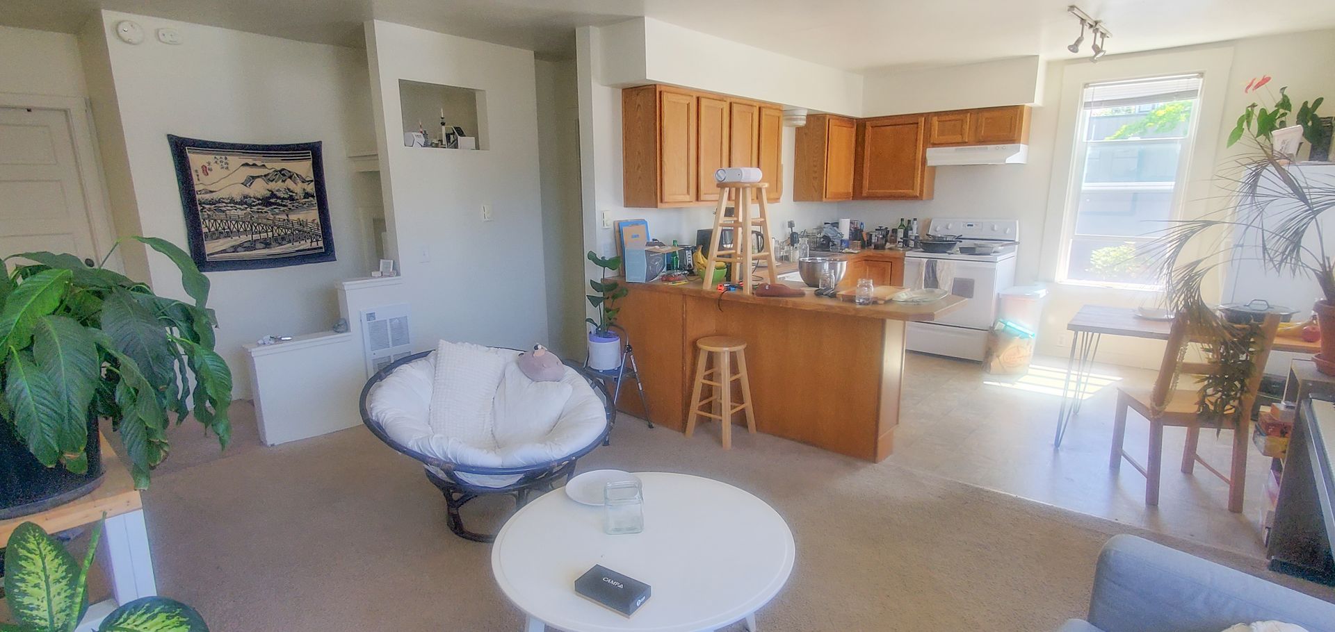 Natural light and spacious living space. Laundry is shared and on site. Off street parking is available first-come-first-served