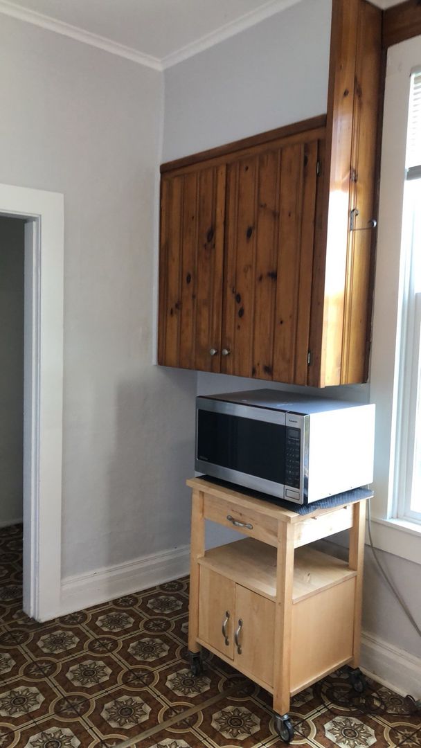 DESCRIPTION: This 5bdrm/2bath upper unit in a duplex is close to everything. 9+ foot ceilings. Has vintage charm, but all new paint, carpet, high efficiency, gas forced air heat. Off street parking, lockable storage shed, washer/dryer, 2 refrigerators, newer range, and dishwasher. Big bedrooms.