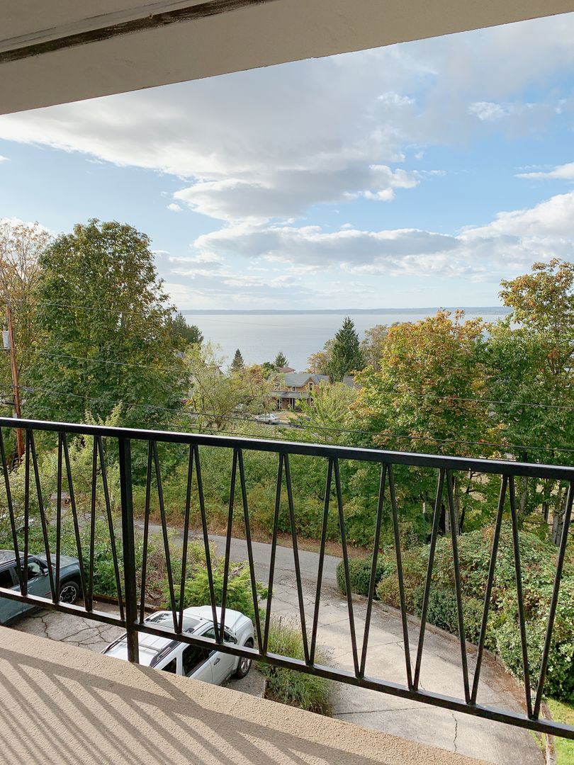 DESCRIPTION: Breathtaking views from this 3 bedroom/1 bath unit right across the street from the Viking Union & WWU. The oversize, covered, multi-season deck has plenty of room for outdoor furniture. Updated kitchen, bath and flooring. In-unit laundry with reserved on-site garage parking.