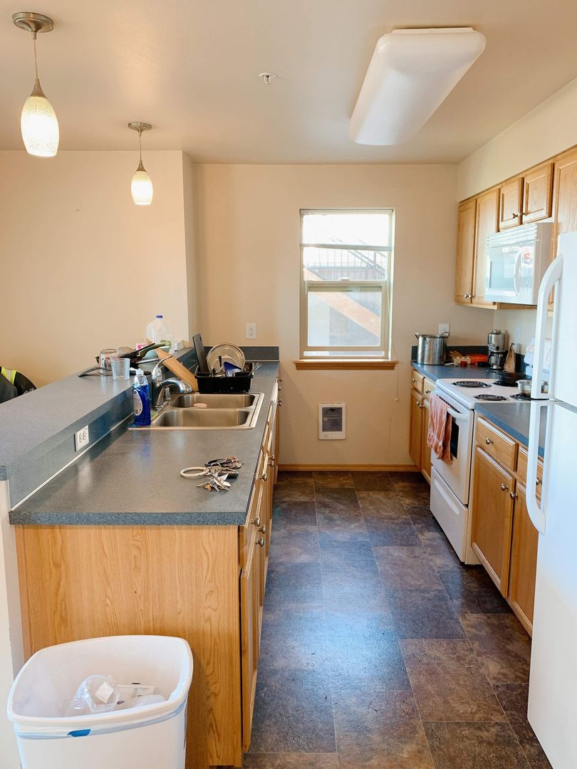 DESCRIPTION: Built in 2012, this newer Bay-View 4 bdrm/1.5 bath unit is in the middle of Student Row. Easy access to the bus line and very walk-able/bike-able to WWU and Downtown. This is the only unit with an oversized, covered deck with second entrance. It also has an open floor plan, laundry in unit and off-street parking. Pictures are of a unit with a similar layout and finishes, except it's all LVP flooring now!