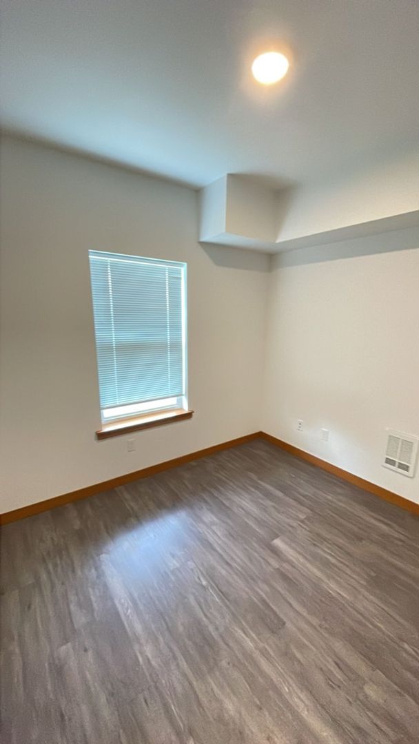 DESCRIPTION: Sunny 3 bdrm/1 bath second floor unit with balcony. Laundry in unit, a lot of onsite parking and right on the bus line. Modern finishes with durable LVP flooring and a walk-able/bike-able location. Secure bike storage area too!
