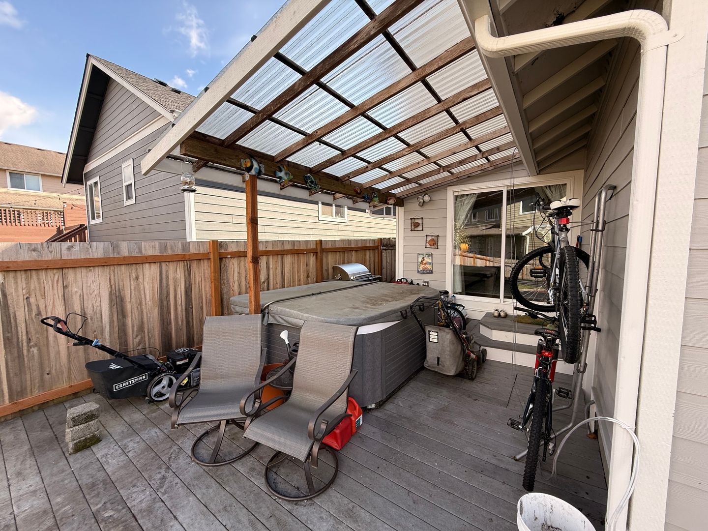 DESCRIPTION: Sunny, spacious 4 bdrm/2.5 bath home in the Barkley Area. Close to schools, parks, trails. Good sized kitchen with open floor plan in addition to smaller gathering spaces. Large fenced yard with covered patio. The home also has a primary suite, a second den space, two car garage + laundry in unit. The third garage is not for tenant use. Interior will be painted, some carpet will be replaced and the hot tub will be removed prior to lease start.