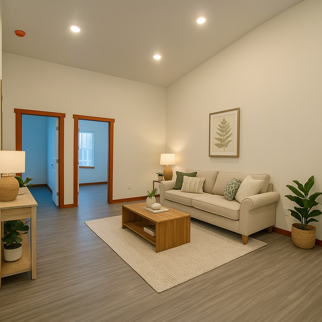 DESCRIPTION: Sunny 3 bdrm/1 bath top floor unit with vaulted ceilings and air-conditioning, and a private balcony off the middle bedroom. Close to Downtown and WWU. 848 square feet. Laundry in unit, shared on-site parking, and near the bus line. Modern finishes with durable LVP flooring and a walk-able/bike-able location.