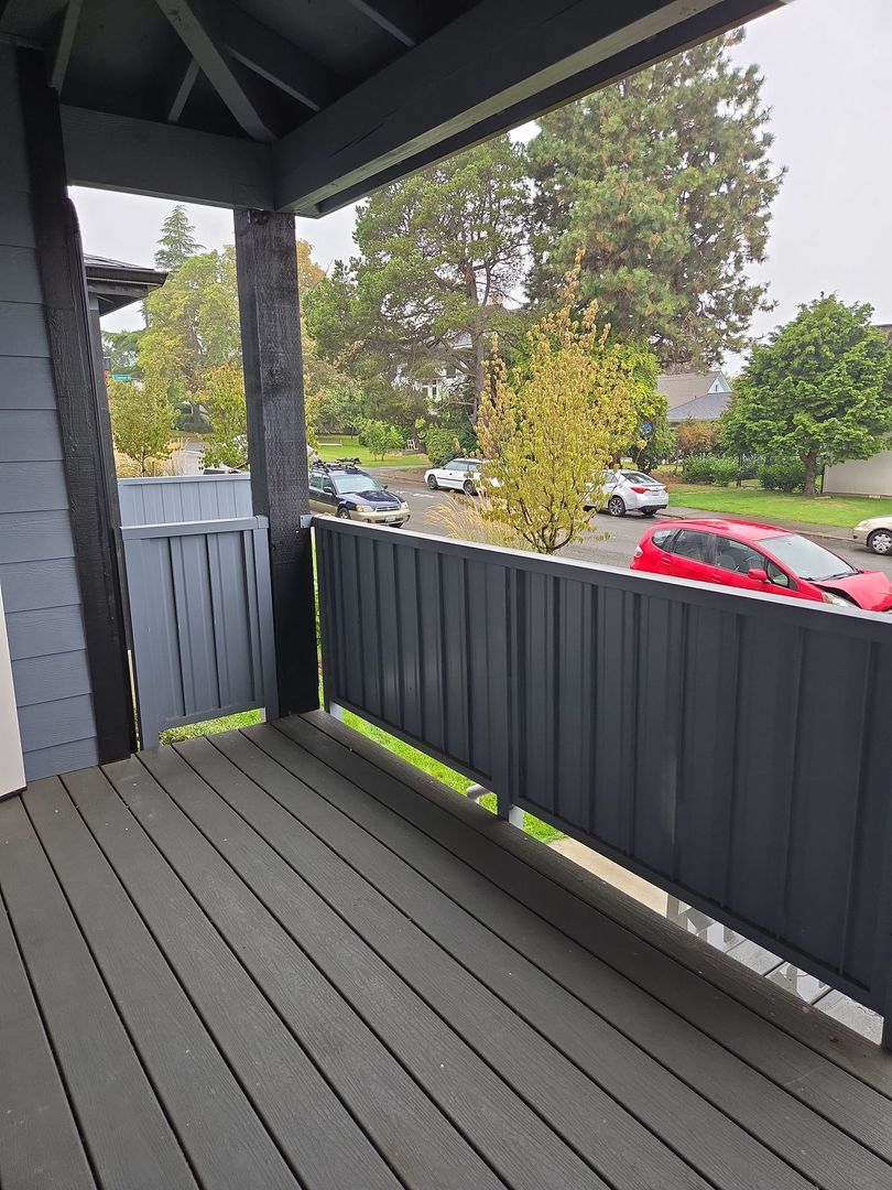 DESCRIPTION: Sunny 3 bdrm/1 bath Ground Floor unit with covered deck, laundry in unit, tons of free parking and right on the bus line. Some units have views of the City and Mountains beyond. Modern finishes with durable LVP flooring and a walk-able/bike-able location. Secure bike storage area too!
