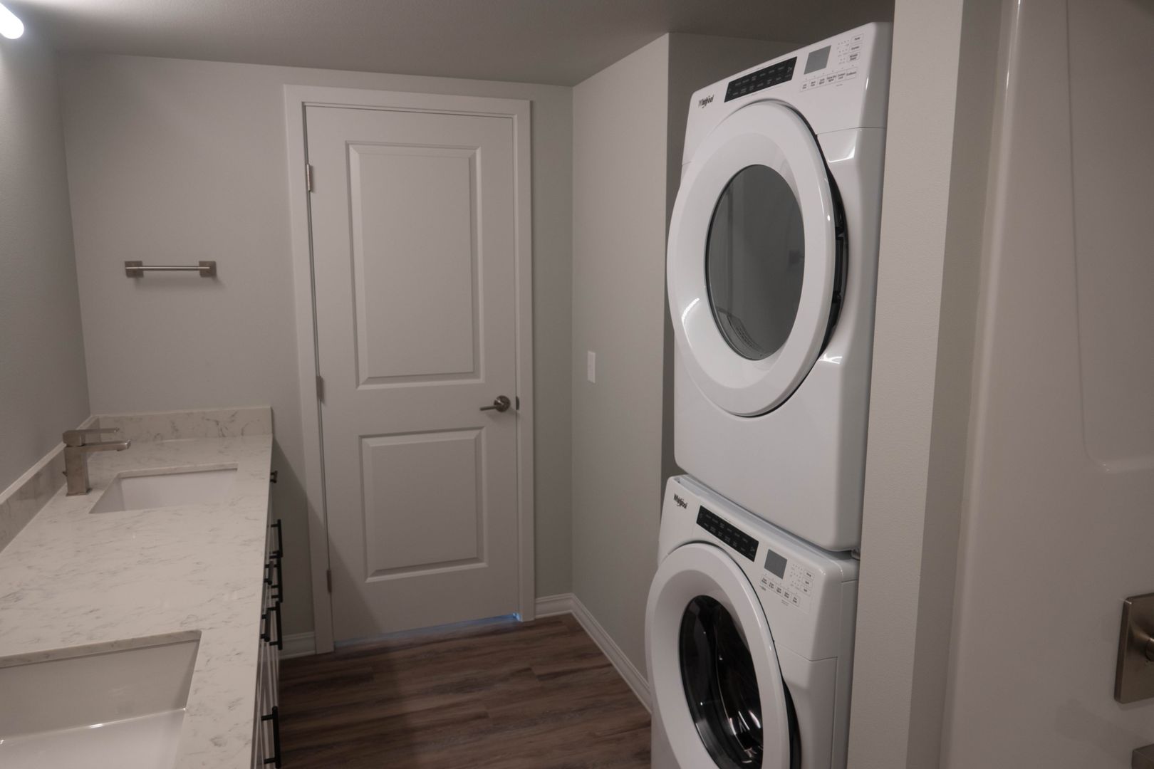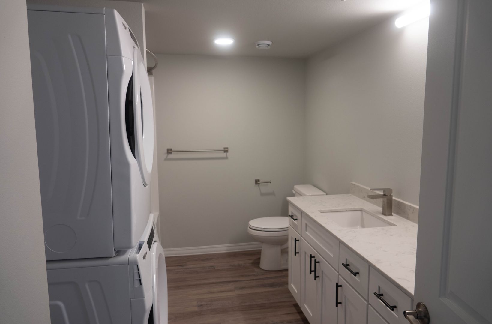 Washer/Dryer in unit and one bedroom has a private bath.