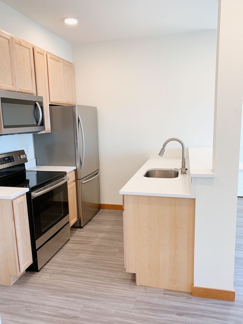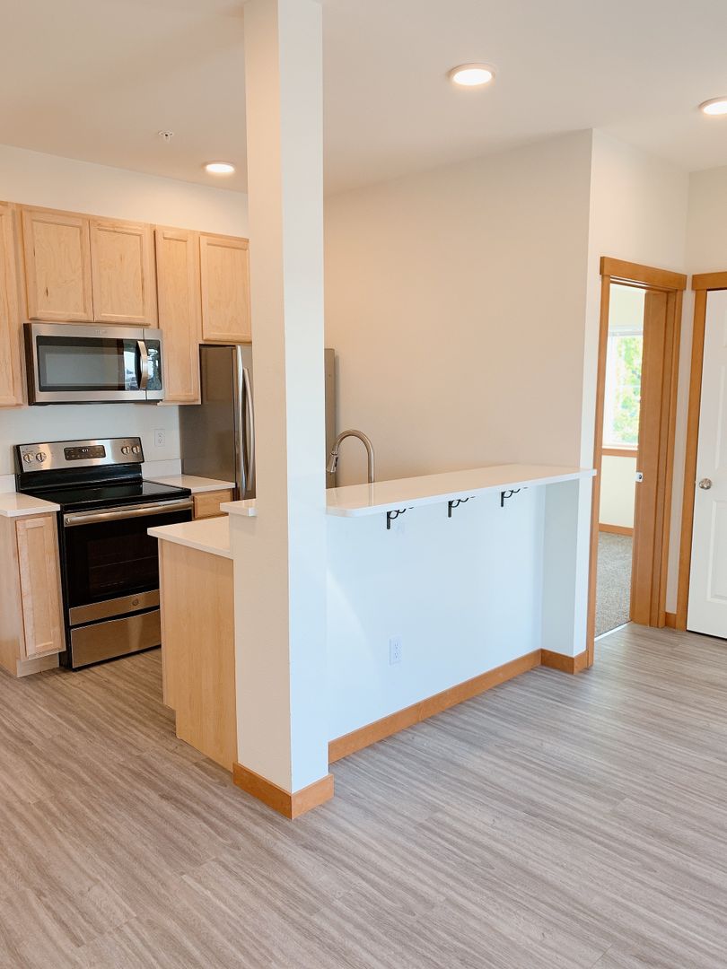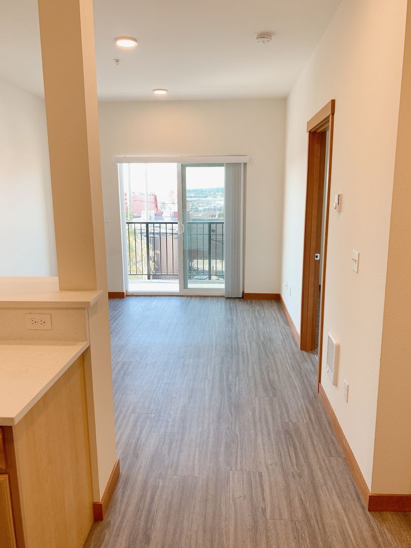 DESCRIPTION: This newer Bay + City View 3 bedroom/1.5 bath unit is in a secure building in the Downtown Bellingham area. Walkable to WWU, Parks, Restaurants and The Community Food Co-op. Southwestern views of the City and Bellingham Bay. Upgraded finishes with LVP flooring, solid surface counters and a stainless appliance suite. Laundry in unit and plenty of parking in after-hours lot and on the street. No pets, no smoking.