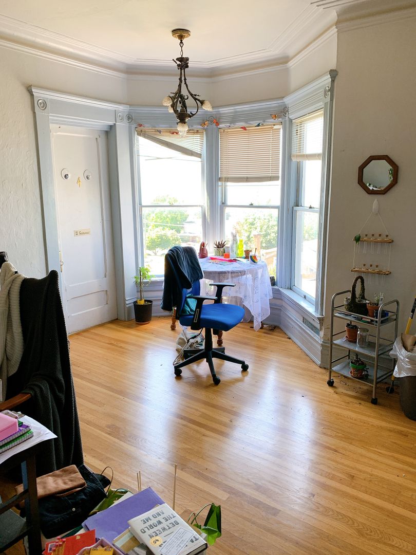 DESCRIPTION: Preleasing Room #4! Private suite for rent at the Morse Mansion at 1014 N Garden. This first and second floor unit has large living spaces, a shared kitchen, shared laundry and onsite parking. The Rooming House lease has house rules regarding tenant conduct and a required level of care and cleaning of the common spaces. This is community living for tenants who want to live in a positive community space and be respectful of the space and the diversity of the tenant group. No pets, no smoking, no parties. Room #4 is Southwest facing with Bay + City Views. It has a private bath with shower. Located on the second floor and doesn't share walls with other bedrooms. Adjacent to the upstairs common space.