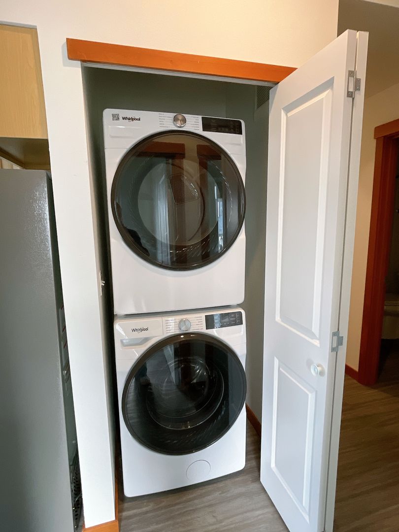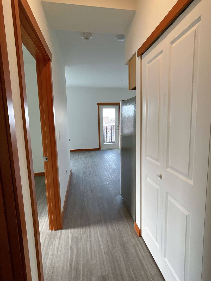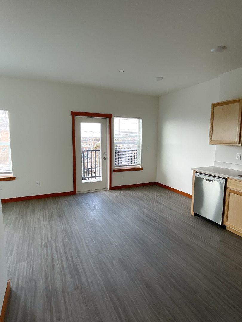 DESCRIPTION: Sunny 2 bdrm/1 bath unit with balcony with awesome view to the bay. Close to Downtown and WWU. 689 square feet. Air conditioning, laundry in unit, onsite parking, and near the bus line. Modern finishes with durable LVP flooring and a walk-able/bike-able location.